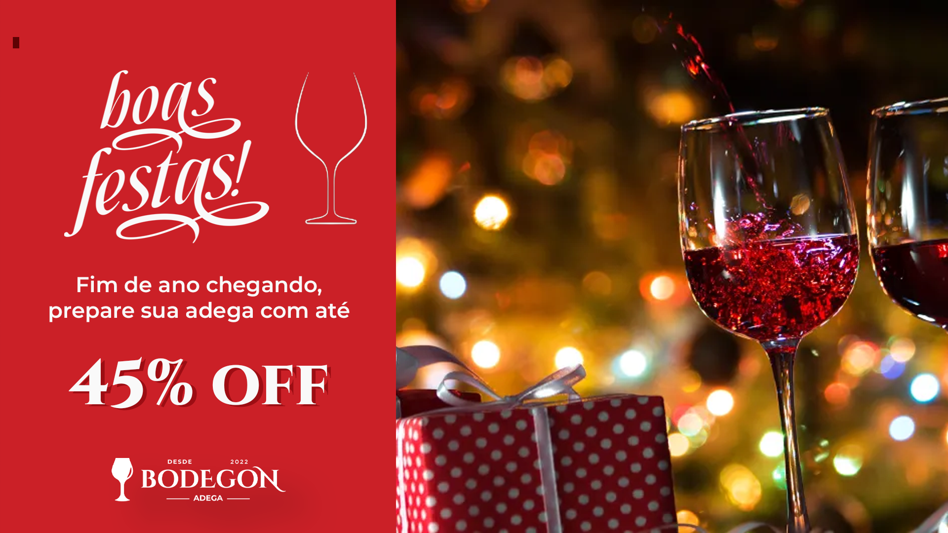 O brinde mais aguardado do ano chegou — com 45% OFF em todos os vinhos e +15% de desconto exclusivo no PIX!